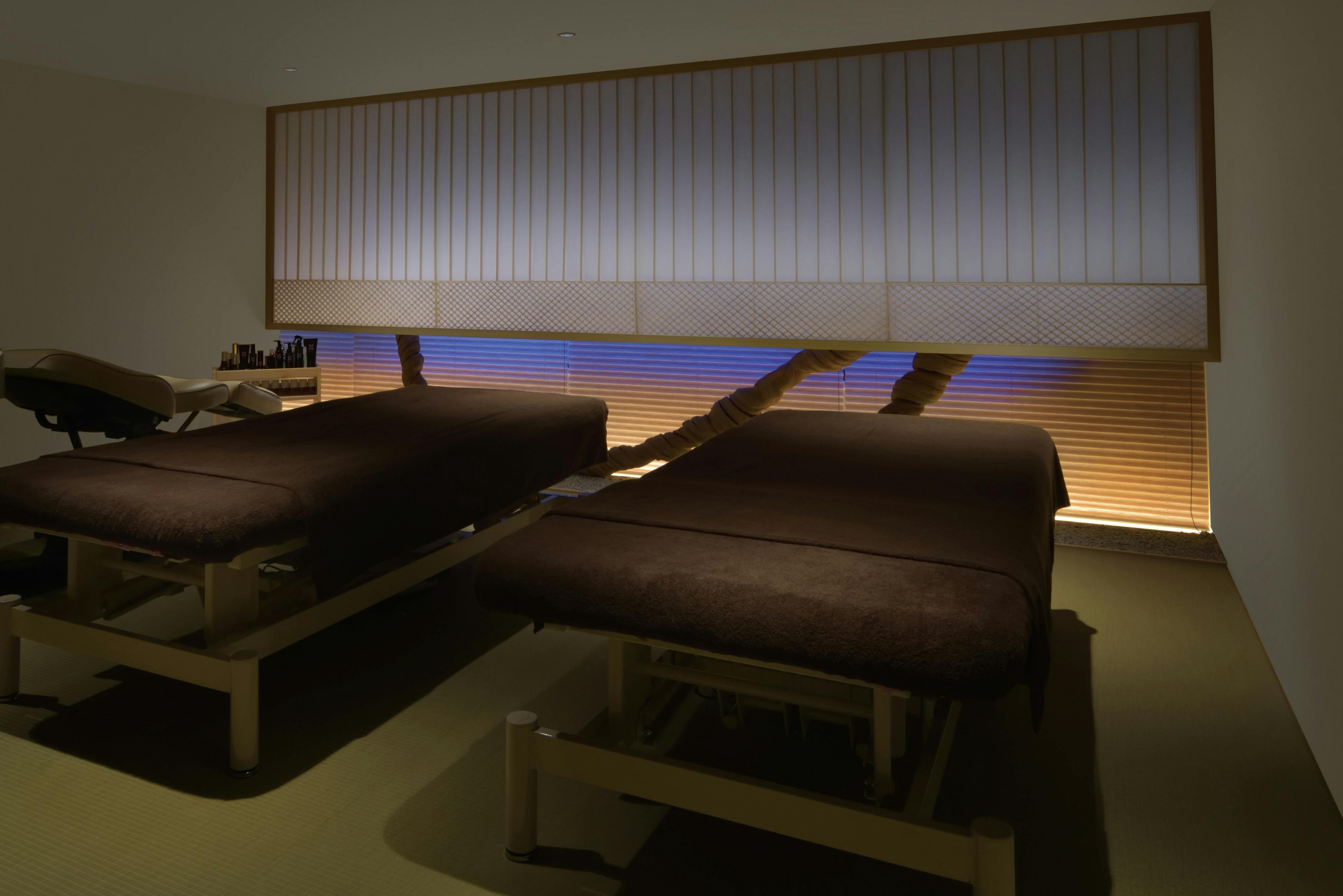 サロン内は洗練された和の空間。伊賀の職人による設えが美しい、静けさをテーマにした個室は、専用のシャワー、パウダールームを完備したプライベートスペースとなっています。