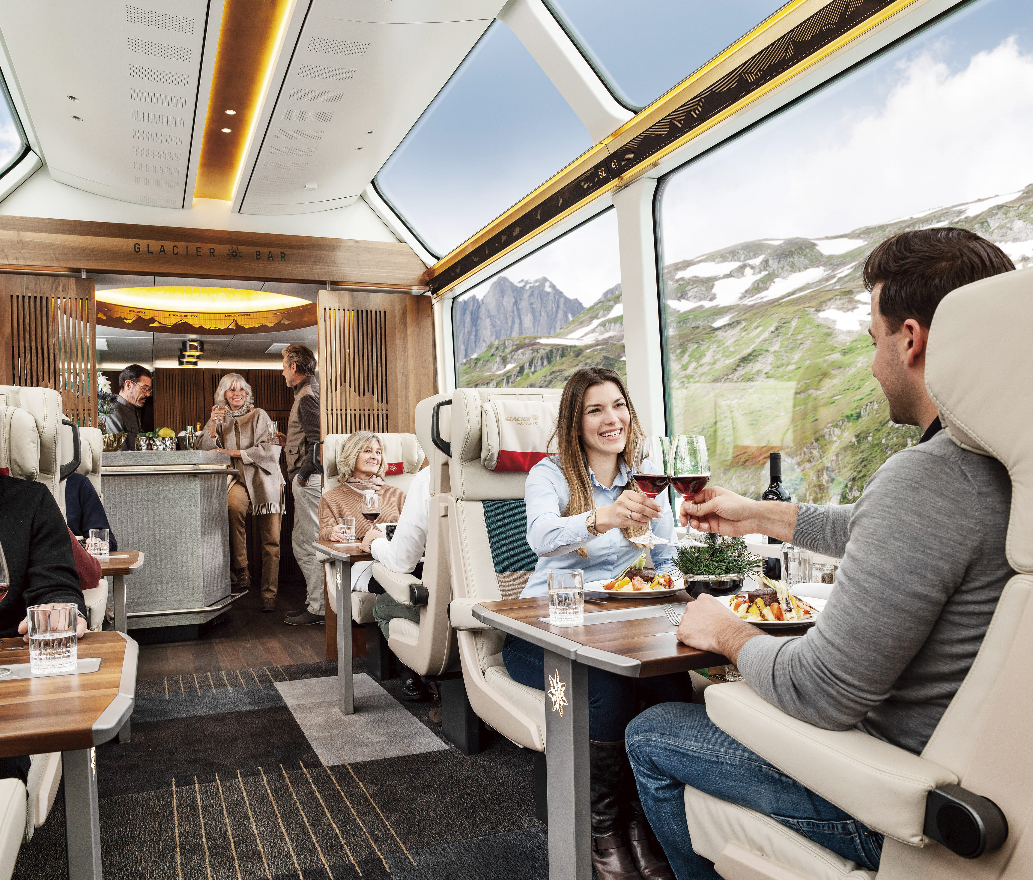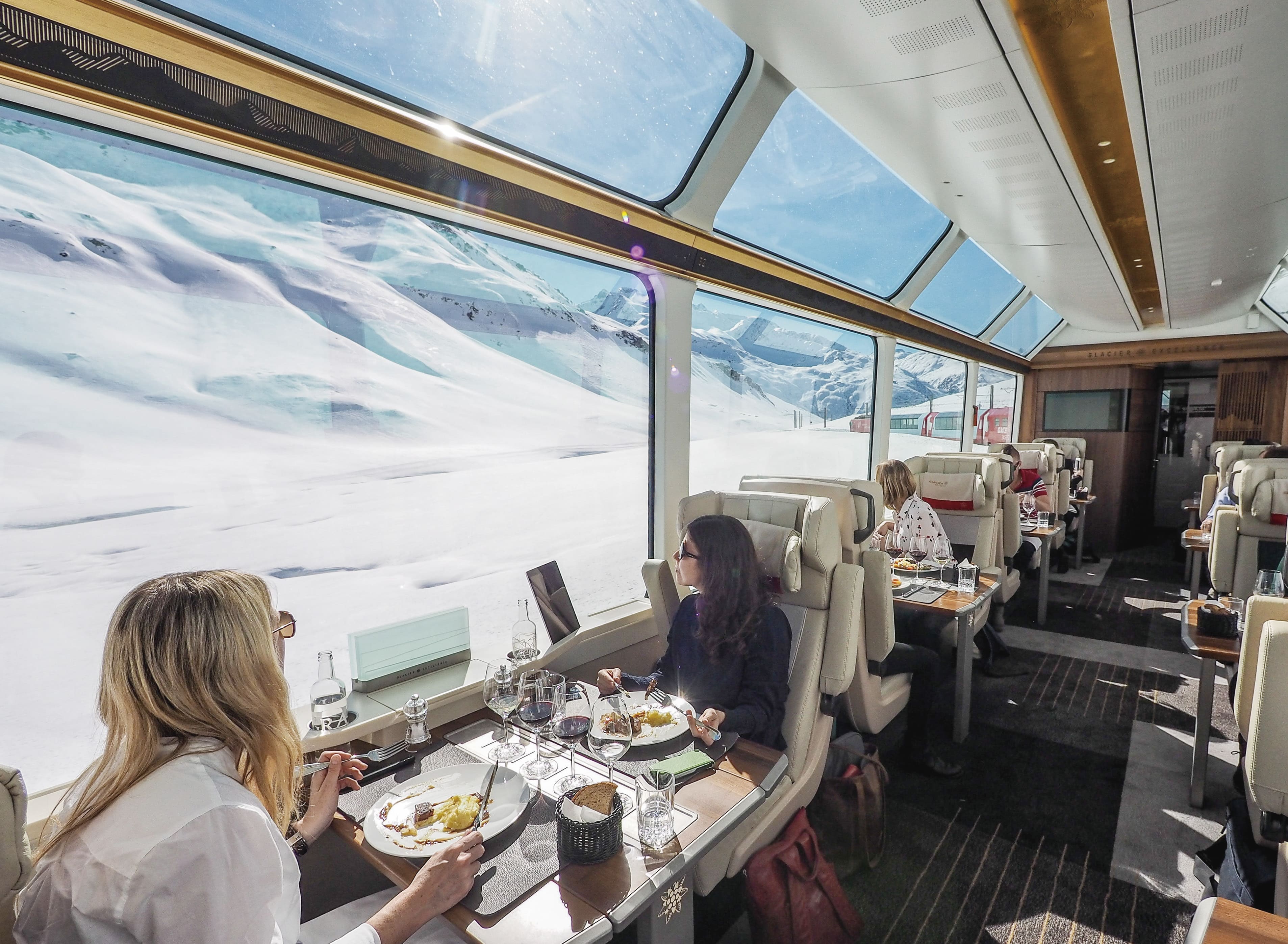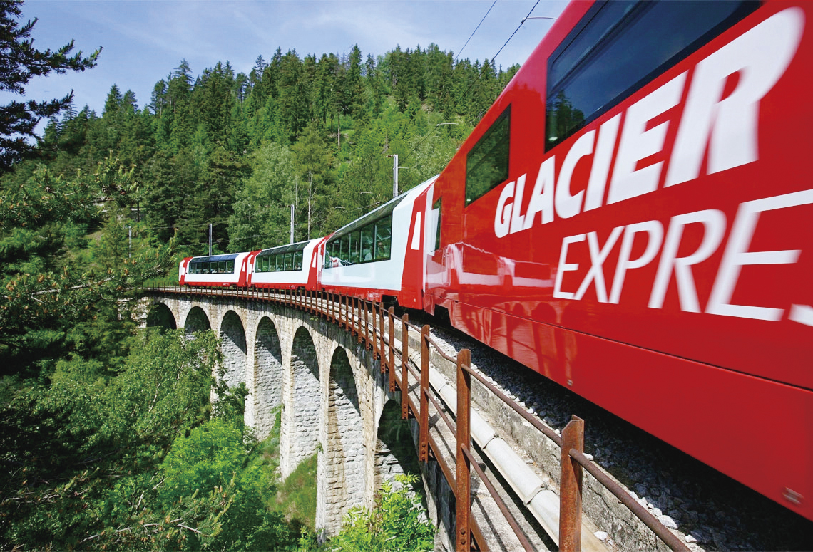 サンモリッツとツェルマットを結ぶ約8時間の「氷河急行」の旅は、291の橋を渡り、ドラマチックなスイスアルプスを駆け抜ける、世界で最も美しい列車の旅のひとつと言われています。