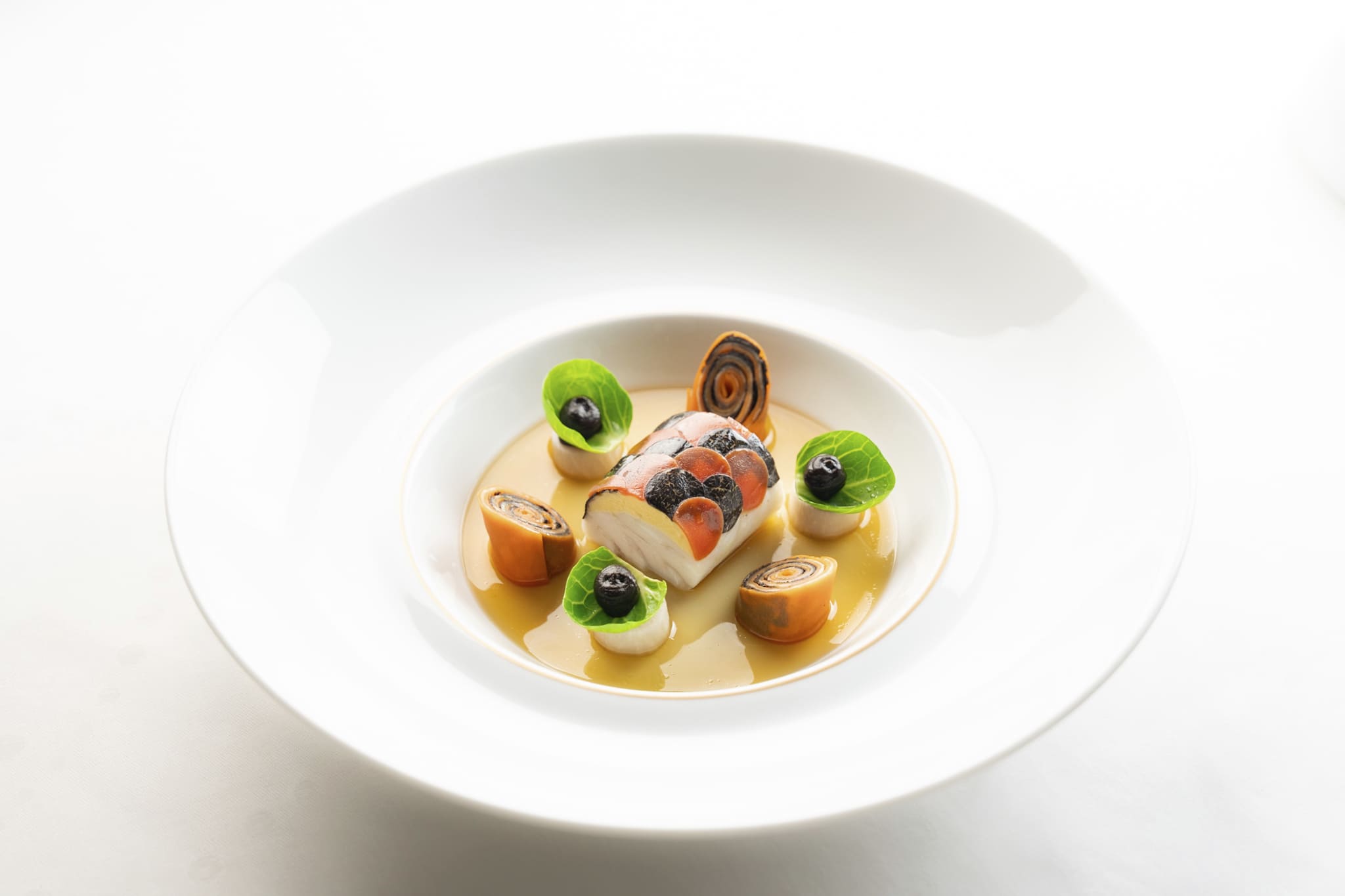 フランス料理の伝統技法を礎に、日本の食材や季節感、美意識を取り入れた料理は、完成度の高さと品格を併せ持つスタイルとして知られています。