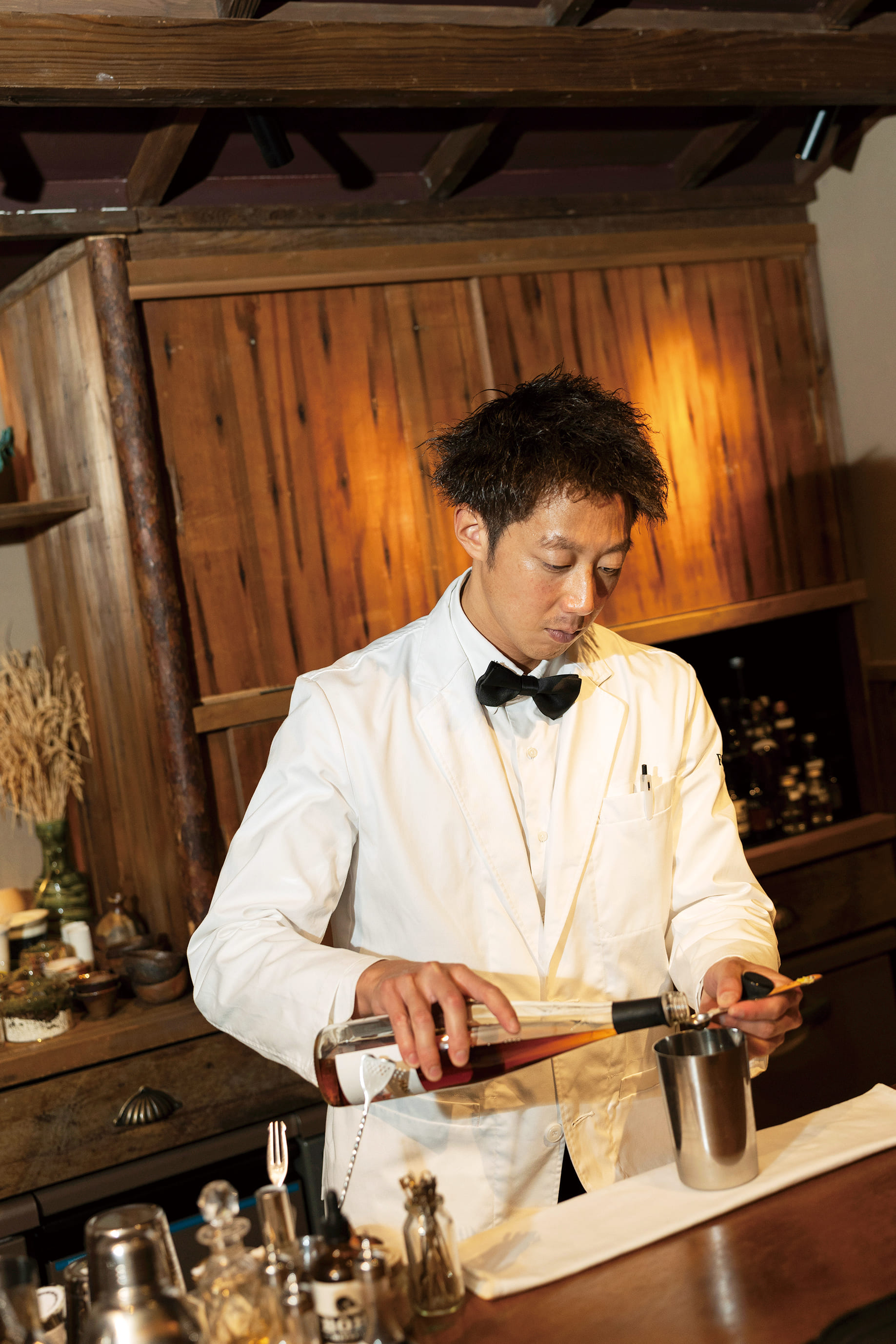 「“FOLKLORE”には、民間伝承という意味があります。日本料理、フランス料理という名称があるように、私たちは國酒と日本の素材を使って作るカクテルを“ジャパニーズカクテル”として確立し、受け継いでいこうと考えています。カクテルのコースは、日本酒と焼酎各3杯か5杯で選択いただけます。また、日本酒や焼酎を単体で飲めるテイスティングコースや、オリジナルシグネチャーカクテルのほか、クラシックカクテルを國酒でアレンジしたドリンクもご用意しています。バーテンダーと生産者とのつながりというのは、昔はあまりなかったのですが、今では日本酒や焼酎の蔵元の方々もよくお店に来てくださいますし、蔵を見学させていただくこともあり、面白いですね 。弊社はお酒にかかわる業界全体の活性化を目指し、カクテル作りはもちろん、イベントの開催も行っています」。