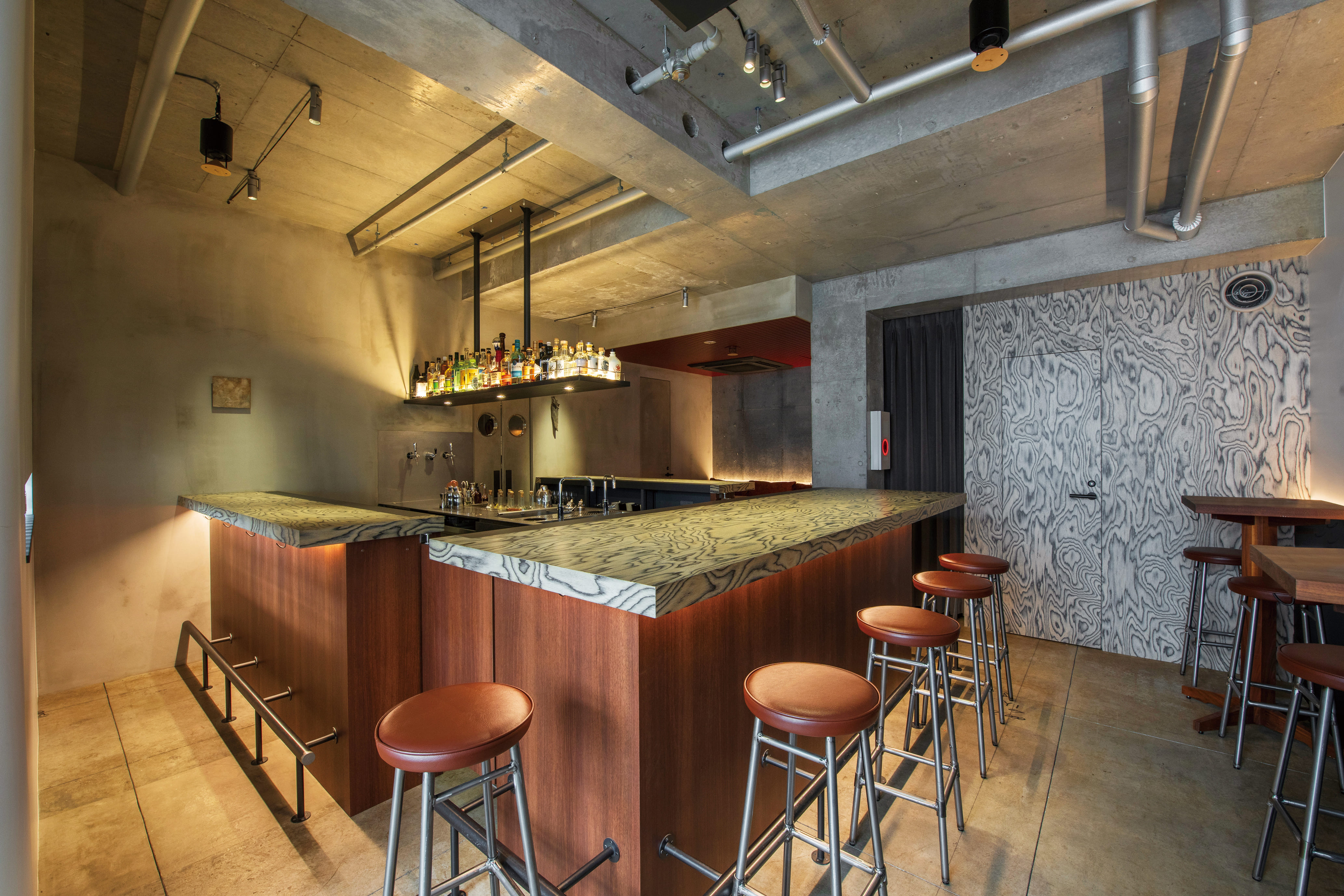 ↑アイランドカウンターを中心に据えた店内。プロデューサーの野村氏は、2022年に蔵前にタチノミ・リカーショップ「NOMURA SHOTEN」を開店し話題に。